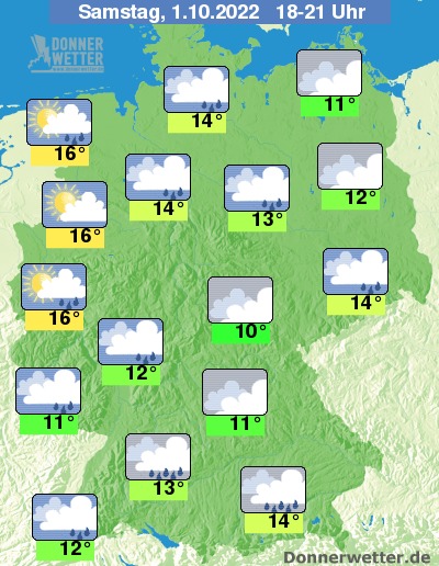 Heute Abend ist es vor allem über der Südosthälfte des Landes meist bedeckt und es bilden sich gebietsweise Schauer, sonst lockert es von Westen her auch wieder häufiger auf, dazwischen können dichte Wolken jedoch weiterhin Schauer bringen. Die Temperatur liegt bei 10 Grad in Jena und etwa 16 Grad in Köln. Es weht ein starker, teils stürmischer, an den Küsten oft stürmischer Wind.