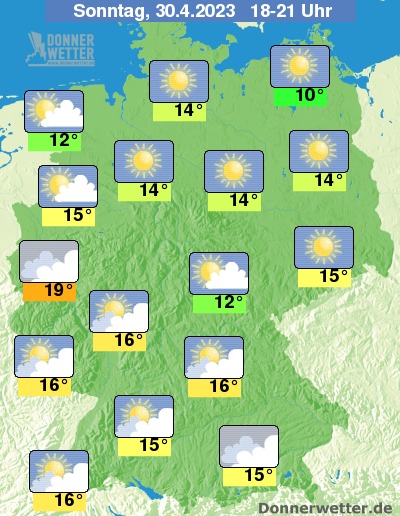 Am Montag ist es über dem Süden und im weiteren Verlauf auch teils über Sachsen stark bewölkt und es fällt gebietsweise Regen. Weiter nach Norden hin scheint hingegen häufig die Sonne und es ziehen meist nur lockere Wolkenfelder durch. Die Temperatur steigt auf 12 Grad in München und bis 20 Grad in Köln.