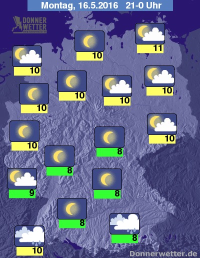 Am Montag Abend zeigt das Wetter sich weitgehend über der kompletten Bundesrepublik trocken. Ausgenommen sind die Gebiete am Schwarzwald und Oberbayern. Dort ist einer Schauer vorkommen nicht ausgeschlossen.