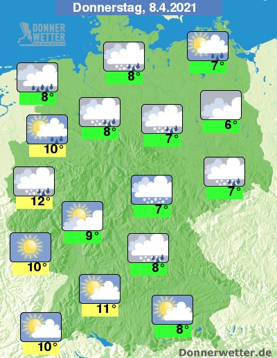 Am Donnerstag ziehen über die Nordosthälfte des Landes meist dichte Wolken hinweg und es fällt gebietsweise Regen oder Schnee. Im übrigen Land ist es hingegen überwiegend heiter oder wechselnd bewölkt und dazu weitgehend trocken. Die Temperatur erreicht 6 Grad in Berlin und bis 12 Grad in Köln. An den Küsten weht ein starker und teils stürmischer Wind.