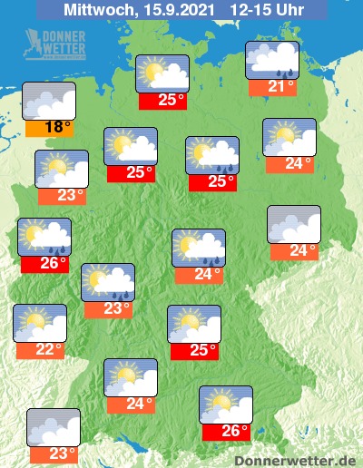 Heute Nachmittag ist es im Land überwiegend stark bewölkt, Auflockerungen sind jedoch ebenso möglich. Es bilden sich gebietsweise Schauer, örtlich können sich auch einzelne Gewitter entwickeln. Die Temperatur steigt auf 18 Grad an der Nordsee und bis 27 Grad im Rheinland.
