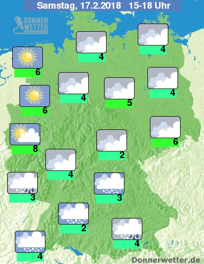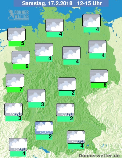 Im Nachmittagsverlauf gibt es zwischen Ostfriesland und der Eifel ein paar Sonnenstrahlen, ansonsten bleibt trübes Grau wetterbestimmend. Vor allem in Baden-Württemberg und Bayern fallen weitere Schneeregen-, Regen- oder Schneeschauer. Örtlich besteht Glättegefahr.