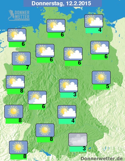 Am Donnerstag steht uns ein verbreitet freundlicher und trockener Tag mit viel Sonnenschein bevor. Nur gebietsweise ziehen auch mal dichtere Wolken durch. Im Süden und Südosten des Landes hält sich zum Teil noch hochnebelartige Bewölkung, auch im äußeren Norden ist es oft noch trüb, allerdings ebenfalls trocken. Die Temperatur steigt auf 3 Grad im Südosten und bis etwa 8 Grad in der Kölner Bucht.