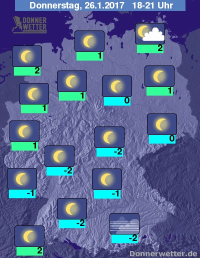 Bis zum Abend klart es dann auch in den restlichen Gebieten auf und es wird schon früh sternenklar, lediglich an der Ostsee sind noch vereinzelte Wolken unterwegs. Im Süden bildet sich lokal zudem leichter Nebel.