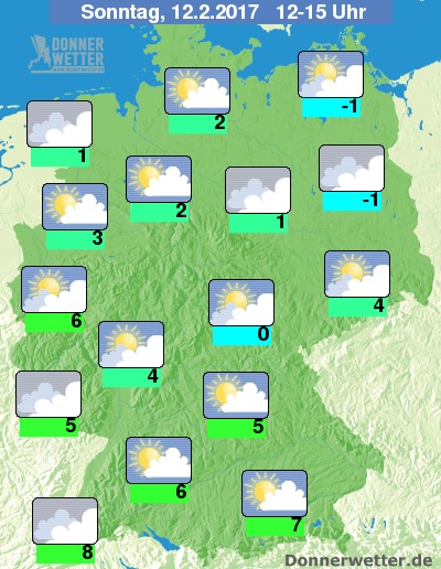 Heute Nachmittag ist es über weiten Teilen Deutschlands aufgelockert, gebietsweise jedoch auch stark bewölkt. dabei bleibt es weitgehend trocken. Die Temperatur liegt bei -1 Grad in Rostock und um 8 Grad im Oberrheingraben.