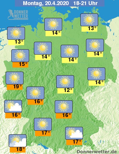 Die Temperaturen sinken in den späteren Abendstunden auf Werte um 14 Grad im Breisgau und um 7 Grad an der Ostseeküste.