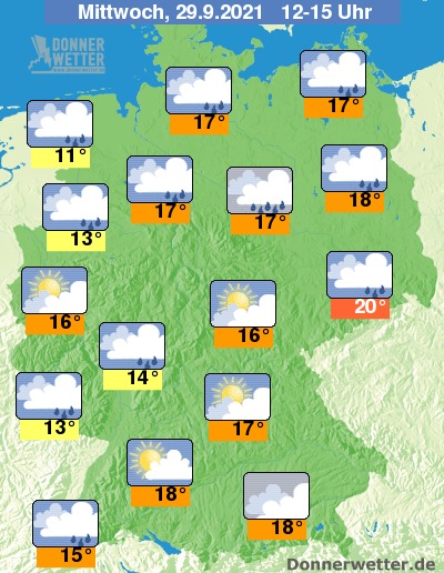 Heute Nachmittag ist es häufig stark bewölkt, dazwischen kann es aber auch hier und da auflockern, jedoch bilden sich gebietsweise Schauer. Die Temperatur liegt bei 11 Grad an der Nordsee und bis 20 Grad in der Lausitz.