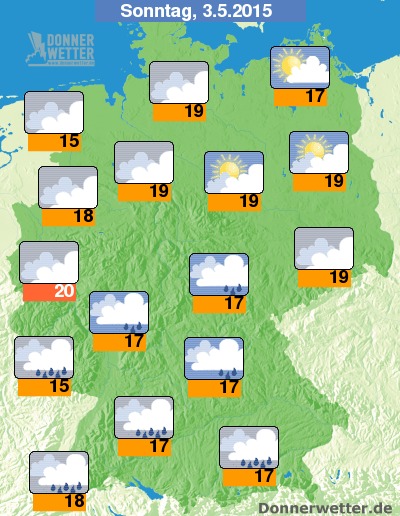 Heute ist es vor allem zu Beginn im Nordosten noch oft heiter, sonst ist es bereits meist dicht bewölkt und in der Südhälfte fällt immer wieder, zum Teil langanhaltender Regen, auch im Westen fällt gebietsweise Regen. Am Nachmittag und Abend breitet sich der Regen noch etwas weiter nach Nordosten hin aus. Zudem zieht vor allem im Norden Regen auf, im Osten und Nordosten bleibt es bis zum Abend jedoch weitgehend trocken. Die Temperatur steigt auf milde Werte zwischen 15 Grad in Ostfriesland und bis 20 Grad in der Kölner Bucht.