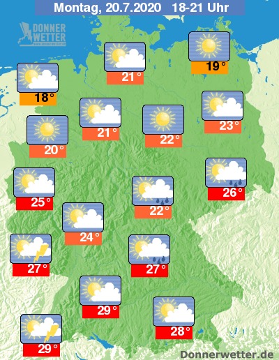 Heute Nachmittag zeigen sich immer mehr heitere bis sonnige Abschnitte. Besonders von der Mitte des Landes bis nach Ostdeutschland und auch in den Nordosten halten sich oft auch dichte Wolken, die hier für Schauer und mögliche Gewitter sorgen, sonst werden Schauer und vereinzelte Gewitter imme seltener. Die Temperatur liegt bei 17 Grad an der Nordsee und bis 28 Grad in Stuttgart und München.