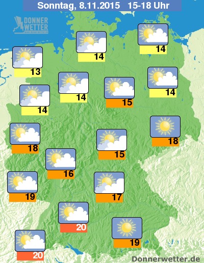 Am Nachmittag bestimmt freundliches Hochdruckwetter weite Teile der Republik. Nur an der Nordseeküste können phasenweise auch mal dichtere Wolken durchziehen. Die Temperaturen erreichen Werte um 13 bis 20 Grad C.