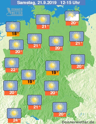 Heute Nachmittag herrscht im Land verbreitet sonniges Wetter. Lediglich im Nordosten ziehen gebietsweise einige Wolkenfelder durch, dazu bleibt es landesweit trocken. Die Temperatur liegt bei 18 Grad an der Nordsee und um 24 Grad in Freiburg.