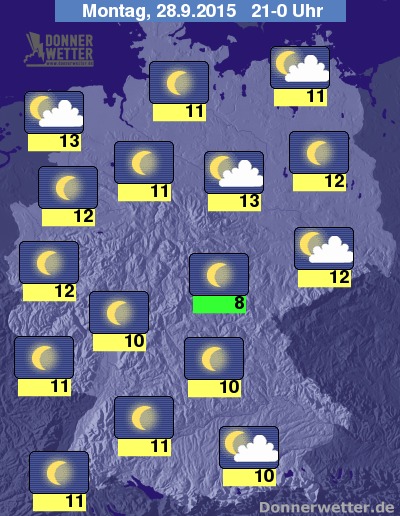 Heute Abend ist es über dem Land zum Großteil sternenklar, hier und da können aber auch mal ein paar harmlose Wolken vorüberziehen, dazu bleibt es trocken. Die Abendtemperatur liegt bei 13 Grad in Magdeburg und bis 8 Grad im Coburger Land.