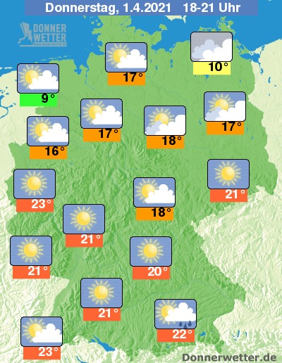Heute Abend ziehen im Norden immer mehr und teils dichte Wolken auf, die aber nur selten ein paar Tropfen bringen können. Weiter nach Süden hin bleibt es meist heiter bis sonnig und trocken. Lediglich am Alpenrand können sich vereinzelt Schauer und Gewitter entwickeln. Die Temperatur liegt bei nur 9 Grad in Cuxhaven und noch bis zu 23 Grad in der Kölner Bucht.