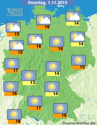 Am Sonntag scheint, nach Auflösung einzelner Nebelfelder, vom Süden bis in die breite Mitte des Landes die Sonne von einem meist wolkenlosen Himmel. Weiter nach Norden hin ziehen zwar oft lockere Wolkenfelder durch, dabei kann sich die Sonne aber häufig zeigen. Die Temperatur steigt auf 13 Grad am Westerwald und bis etwa 18 Grad im Oberrheingraben.