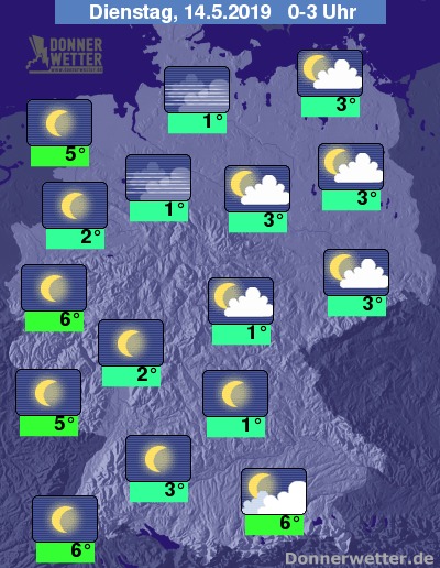 In der Nacht zeigt sich der Himmel über der Nord- und Osthälfte locker oder aufgelockert bewölkt, entlang von Weser, Elbe und Oder kann sich in den kommenden Stunden stellenweise Nebel ausbilden. Im Westen und Südwesten ist es überwiegend sternenklar. Mit Schauern muss in der Nacht nicht gerechnet werden.