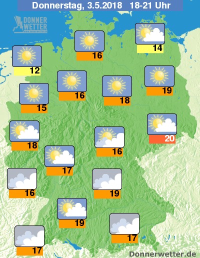 Bis zum Abend lösen sich in der Nordhälfte auch die letzten Wolken fast vollständig auf und uns erwartet ein sonnenreicher Frühlingsabend. Auch in der Mitte des Landes, zwischen Niederrhein und Erzgebirge, scheint verbreitet die Sonne, während die Bewölkung weiter südlich meist noch sehr dicht ist.