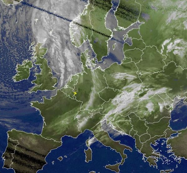 Auf dem heutigen Satellitenfoto ist zwischen den Britischen Inseln und Skandinavien der Ex-Hurrikan "Gonzalo" zu sehen, die Ausläufer sorgen heute auch hierzulande für vielfach windiges und regnerisches Herbstwetter. Das südliche Europa zeigt sich hingegen verbreitet freundlich und trocken.