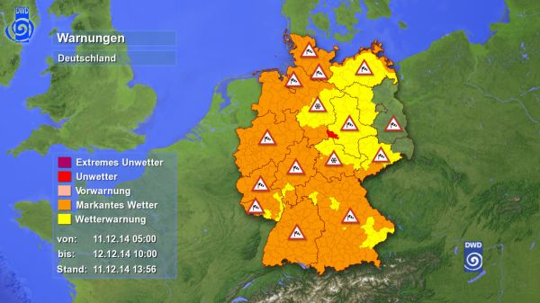 Aktuell bestehen für Deutschland verbreitet Warnungen des Deutschen Wetterdienstes. Bis Morgen ist dabei mit markantem und sehr windigem Wetter zu rechnen. Dabei weht auch im Flachland ein teils stürmischer Wind mit möglichen Sturmböen. Auf den Bergen und im Küstenumfeld muss mit orkanartigen Böen gerechnet werden.