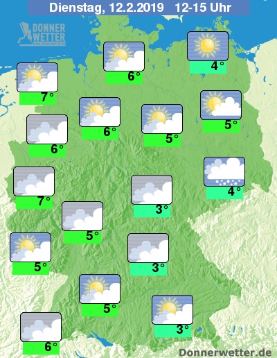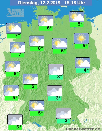 Am Nachmittag scheint im Norden und Nordosten zeitweise die Sonne. Auch in Teilen Süddeutschlands gibt es längere freundliche Abschnitte. Dazwischen halten sich meist dichtere Wolken. In Sachsen, dem östlichen Bayern, sowie am Alpenrand fällt gelegentlich noch Regen oder Schnee.