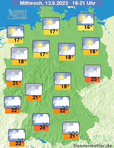 Heute Abend kann sich vor allem über dem Norden die Sonne wieder häufig zeigen, dzu bleibt es trocken. Über der Südhälfte halten sich meist viele und dichte Wolken und südlich des Mains bilden sich weiterhin gebietsweise Schauer. Die Temperatur liegt bei 16 Grad in Rostock und bis 25 Grad in Dresden.