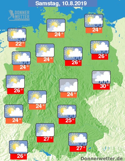 Der Samstag bietet zwar zeitweise die Sonne, dennoch muss im Tagesverlauf immer wieder mit Schauern, im Erzgebirge auch mal mit kräftigeren Regenabschnitten gerechnet werden. Es ist meist locker oder aufgelockert bewölkt. Die Temperaturen erreichen 24 Grad an der Ostseeküste und 30 Grad in Dresden.