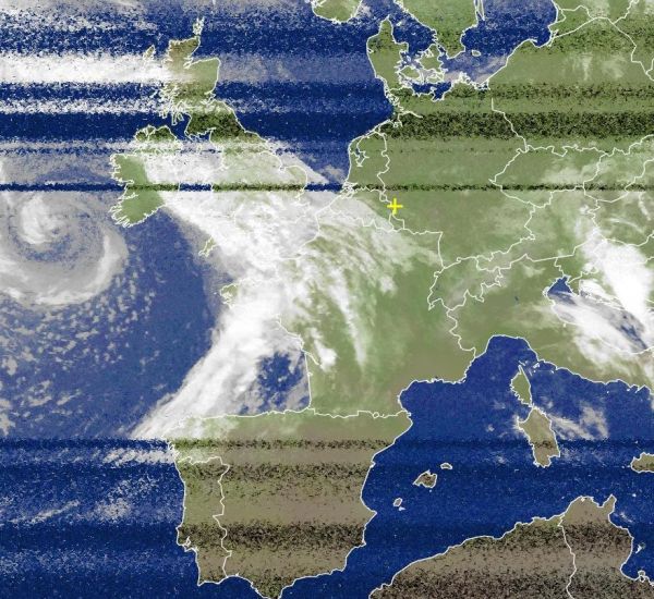 Auf dem Satellitenfoto von heute Morgen erkennen wir das Tief "Hildegund" westlich der Britischen Inseln über dem Atlantik. Ein Ausläufer des Tiefs erstreckt sich von den Britischen Inseln über Frankreich und weiter bis zur Iberischen Halbinsel und bringt in den Regionen neben meist dichten Wolken auch zeitweiligen Regen oder Schauer. Auf seinem Weg weiter nach Osten erreicht der Ausläufer voraussichtlich gegen Abend auch den Westen Deutschlands mit dichten Wolken und Niederschlägen.
