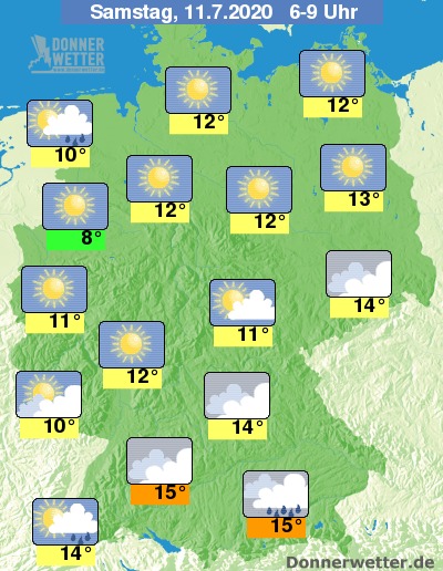Die Temperaturen erreichen in den Frühstunden Werte um 8 Grad im Münsterland und um 15 Grad in Oberbayern.