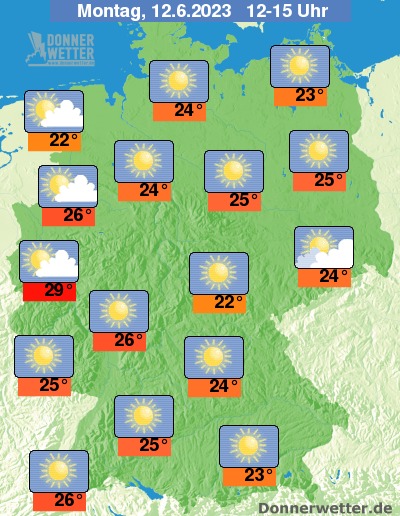 Heute Nachmittag scheint die Sonne von einem zumeist wolkenlosen Himmel, hier und da sind auch lockere Wolkenfelder möglich. Bei Werten von 22 Grad an der Nordsee und bis 29 Grad im Rheinland bleibt es trocken.