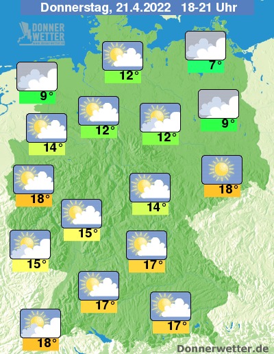 Heute Abend halten sich vor allem an der See, aber auch im übrigen Norden oft dichte Wolken, hier und da ist es auch aufgelockert bewölkt, dazu bleibt es meist trocken. Weiter nach Süden hin ist es häufig heiter, teils auch nur aufgelockert bewölkt, dabei bleibt es trocken. Die Temperatur liegt bei 7 Grad in Rostock und 18 Grad in Dresden.