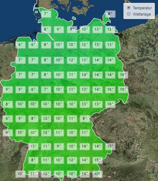 Noch ist die 20 Grad Marke etwas entfernt, doch in Teilen Sachsens werden bereits heute Höchstwerte von bis zu 16 Grad erreicht. Deutlich kühler bleibt es hingegen vorerst im Westen des Landes bei Werten knapp unter der 10 Grad Marke.