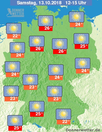 Heute Nachmittag scheint die Sonne von einem meist wolkenlosem Himmel, hier und da sind jedoch lockere Wolken möglich, dabei bleibt es trocken. Die Temperatur liegt bei 22 Grad in Emden und um 26 Grad in Magdeburg.