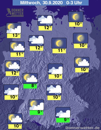 Bis zu den Frühstunden kühlt die Luft auf Werte um 13 bis 8 Grad ab.