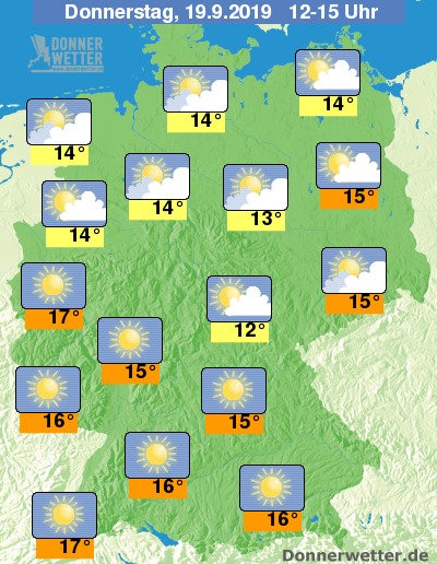 Im Süden und Westen strahlt die Sonne von einem wolkenlosen oder nur leicht bewölkten Himmel.