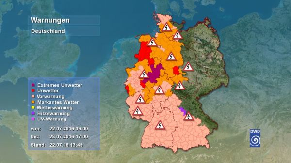 Aktuell bestehen weiterhin amtliche Wetter- und Unwetterwarnungen des Deutschen Wetterdienstes: