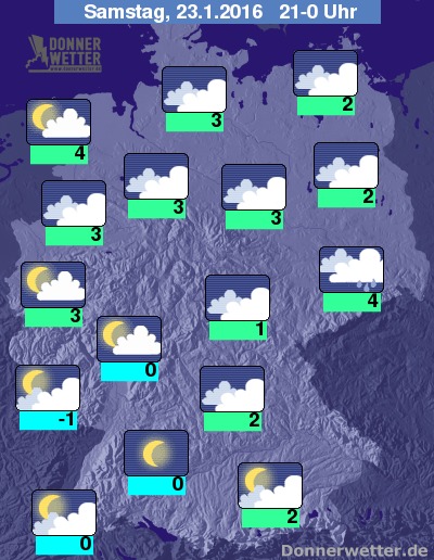 Am Sonntag weitgehend dichte Wolken, anfangs trocken, im Norden und Westen, später auch im Osten aufziehender Regen, im Süden weitgehend trocken, 2 bis 6 Grad.
