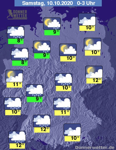 Während der zweiten Nachthälfte regnet es vom Oberrhein bis nach Sachsen zeitweise leicht bis mäßig. Auch an der See sowie in Schleswig-Holstein kann es nass werden. Sonst bleibt es abgesehen von kurzen Aufklarungsabschnitten eher dichter bewölkt.