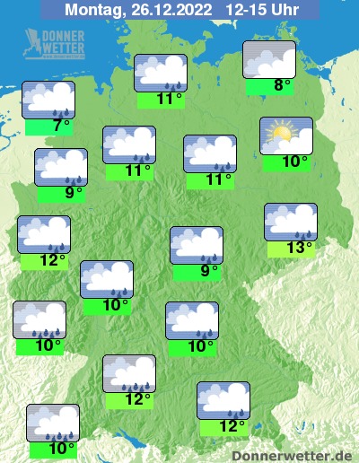Heute Nachmittag ist es über dem Land stark bewölkt oder bedeckt und es bilden sich verbreitet, teils kräftige Schauer. Die Temperatur liegt bei 7 Grad an der Nordsee und 13 Grad in der Lausitz. Es weht ein oft starker, im Norden und vor allem an den Küsten auch stürmischer Wind.