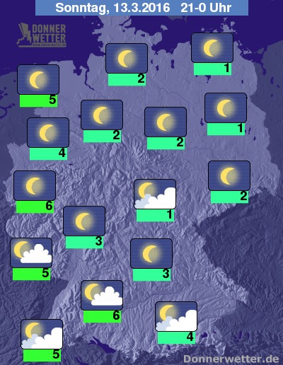 In der Nacht zum Montag ist es am Alpenrand teils stark bewölkt, jedoch trocken, im Norden ziehen auch zunehmend einige Wolken auf, dazwischen zeigen sich jedoch häufig auch die Sterne und zudem bleibt es trocken. In den übrigen Landesteilen ist es verbreitet sternenklar und es ziehen höchsten mal ein paar Wolken durch, dazu bleibt es trocken. Die Temperatur sinkt auf 3 Grad in Ostfriesland und bis -3 Grad im Vogtland.