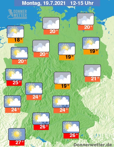 Heute Nachmittag ziehen vor allem über die Nordhälfte Deutschlands vielerorts dichte Wolken hinweg, die jedoch keinen Regen bringen, teils lockert es aber hier auch auf. Weiter nach Süden hin ist es zum Großteil heiter, jedoch können hier ebenso dichte Wolken durchziehen, die einzelne Schauer bringen können. Die Temperatur liegt bei 18 Grad im nördlichen Emsland und bis 27 Grad am Oberrhein.