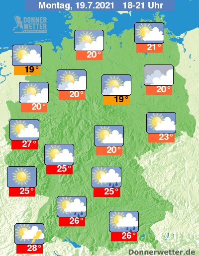 Heute Abend lockert und heitert es insgesamt weiter auf. Im Norden halten sich zwar noch oft dichtere Wolken, zumeist wird es aber heiter und teils sogar sonnig. Im Süden klingen letzte örtliche Schauer und noch seltenere Gewitter ab und nachfolgend ist es hier verbreitet heiter bis sonnig. Die Temperatur liegt bei 19 Grad in Magdeburg und bis 28 Grad in Freiburg.