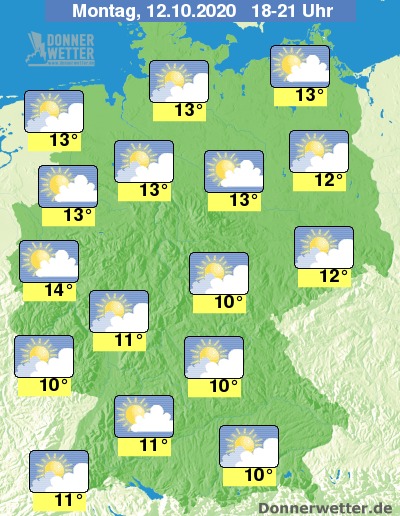 In den Abendstunden zeigt sich der Himmel über weiten Landesteilen heiter bis wolkig oder es ist aufgelockert bewölkt. Mit Schauern ist zunächst nicht zu rechnen. Die Temperaturen erreichen noch Werte um 10 bis 14 Grad.
