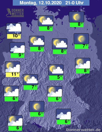 Am späteren Abend nimmt die Bewölkung im Nordwesten sowie am Alpenrand zu, im Nordseeküstenumfeld sind auch einzelne Schauer möglich. In den übrigen Landesteilen überwiegt ein Mix aus lockerer oder aufgelockerter Bewölkung, im äußersten Nordosten funkeln die Sterne auch von einem wolkenlosen Himmel.