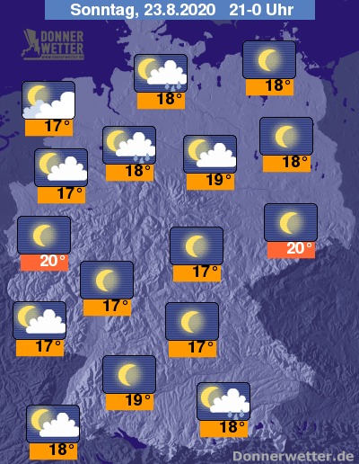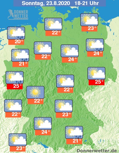 Die Temperaturen gehen in den späteren Abendstunden auf Werte um 20 bis 17 Grad zurück.
