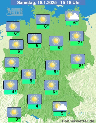 Am Samstagnachmittag zeigt sich der Himmel über weiten Landesteilen heiter oder es ist sonnig. Vor allem in einigen Flussniederungen kann es auch in den Nachmittagsstunden neblig-trüb bleiben.