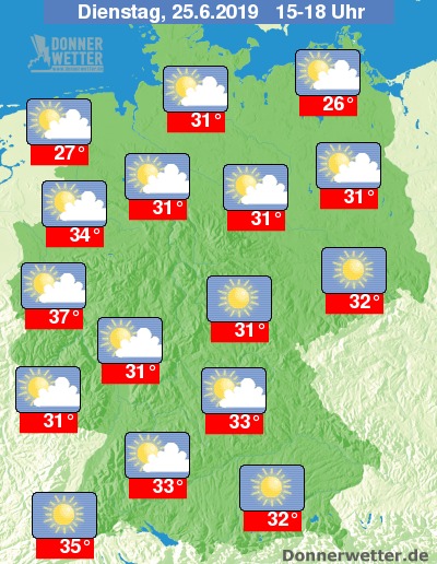 Die Temperaturen steigen im Laufe des Nachmittags noch weiter an und erreichen im Breisgau, sowie in den Ballungsgebieten des Westens extrem heiße 35 bis 37 Grad.