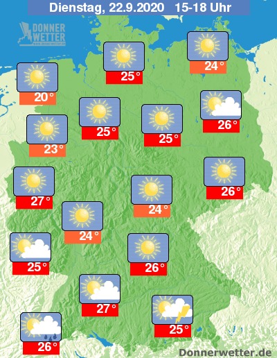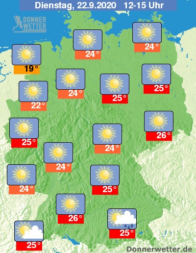 Die Temperaturen bewegen sich 20 und 26 Grad, lediglich an der Nordsee bleibt es etwas kühler.