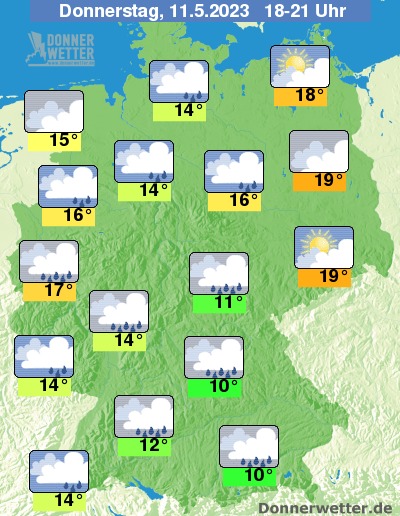 Heute Nachmittag zeigt sich das Wetter zumeist stark bis dicht, im Nord- und Ostseeumfeld, sowie im Osten auch häufig aufgelockert bewölkt, hier bleibt es zumeist trocken, sonst bilden sich aber vielerorts, zum Teil auch kräftige Schauer. Die Temperatur liegt bei 10 Grad in Augsburg und etwa 19 Grad in Dresden.