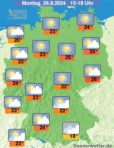 Am Montagnachmittag zeigt sich der Himmel über dem Südosten sowie an der Nordseeküste meist bewölkt, zeitweise sind auch einzelne Schauer möglich. In den übrigen Landesteilen ist es heiter oder die Sonne scheint von einem wolkenlosen Himmel.