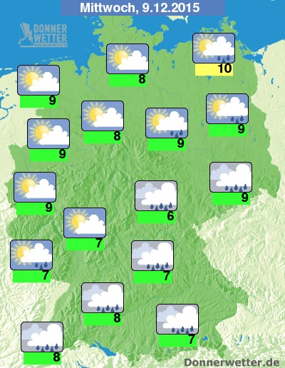 Heute bleibt es über der Südosthälfte von Deutschland bei weitgehend starker Bewölkung und es fällt zudem auch immer wieder Regen, wobei die Regenschwerpunkte im Osten und Südosten des Landes liegen. Im Norden und Westen des Bundesgebiets ist es dagegen verbreitet locker bis aufgelockert bewölkt und trocken, gebietsweise ist es auch sonnig. Die Temperatur steigt auf 6 Grad in der Oberpfalz und bis 10 Grad in Vorpommern.