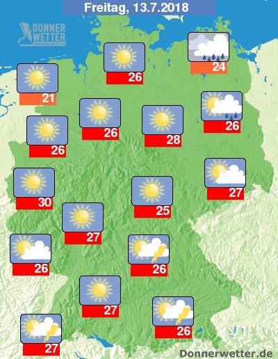 Die Temperaturen erreichen dabei wieder sommerliche Höchstwerte. Diese liegen verbreitet bei rund 25 Grad oder knapp darüber, etwas kühler bleibt es mit Seewind nur an den Küsten. Am Niederrhein werden hingegen schon wieder bis zu 30 Grad erreicht.